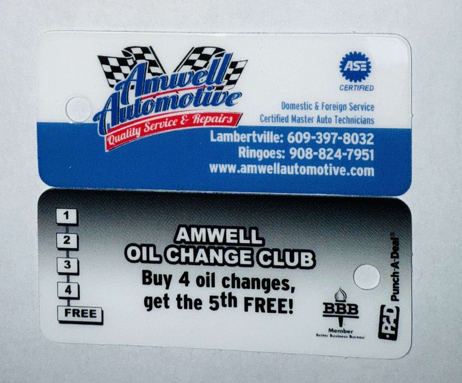 Purchase 4 oil changes and get the 5th one free! Pick up a punch card at the shop.